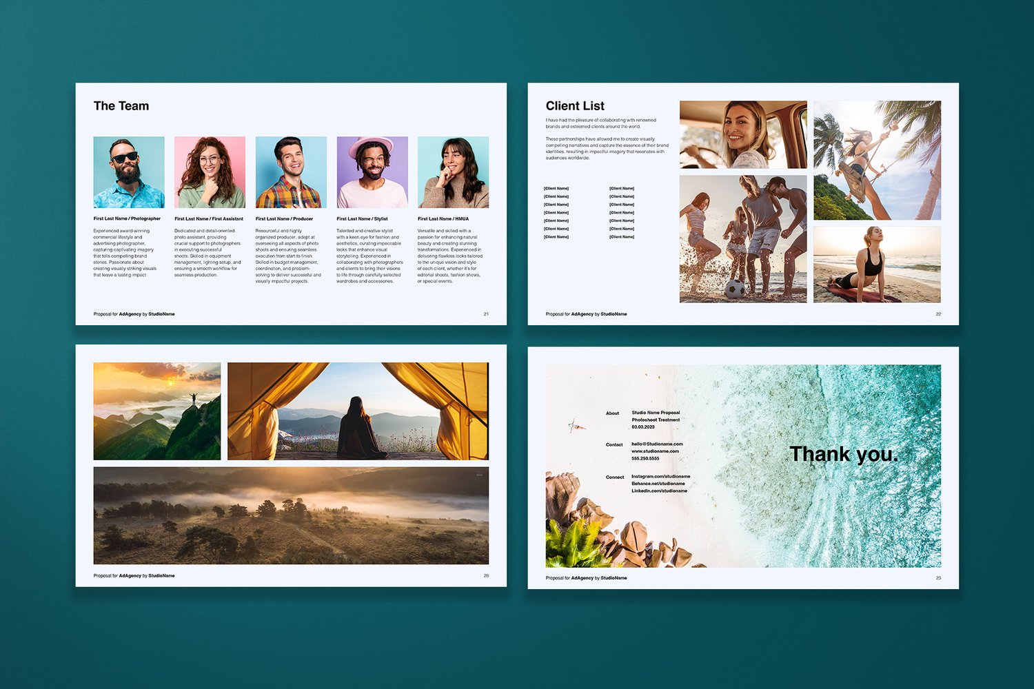 Tailored for photographers, creative directors, graphic designers, ad agencies, and directors, this customizable template for Canva offers 30 pages of versatility. Just insert your images, copy, and branding elements, and you're set to impress. With its fully customizable design, you can easily adjust colors, fonts, and page layouts to match your project perfectly.