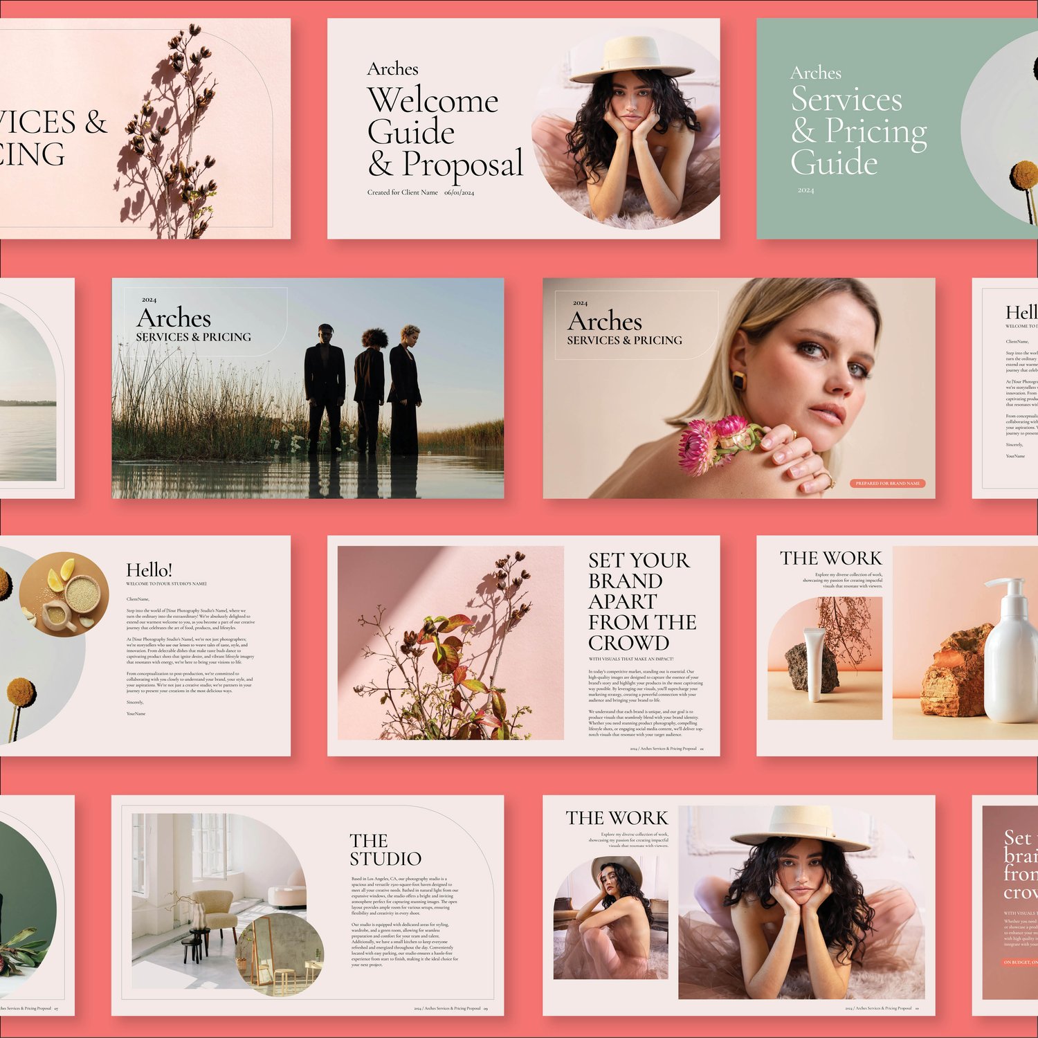 Tired of spending hours on a new proposal for every client inquiry, only to get ghosted? Our Arches Services & Pricing Proposal Template for Canva & InDesign is here to save you time!