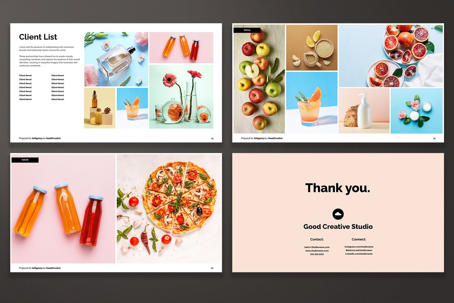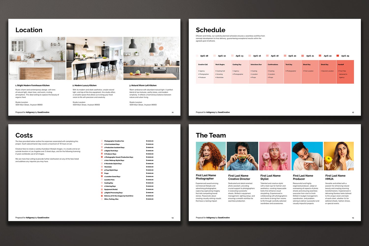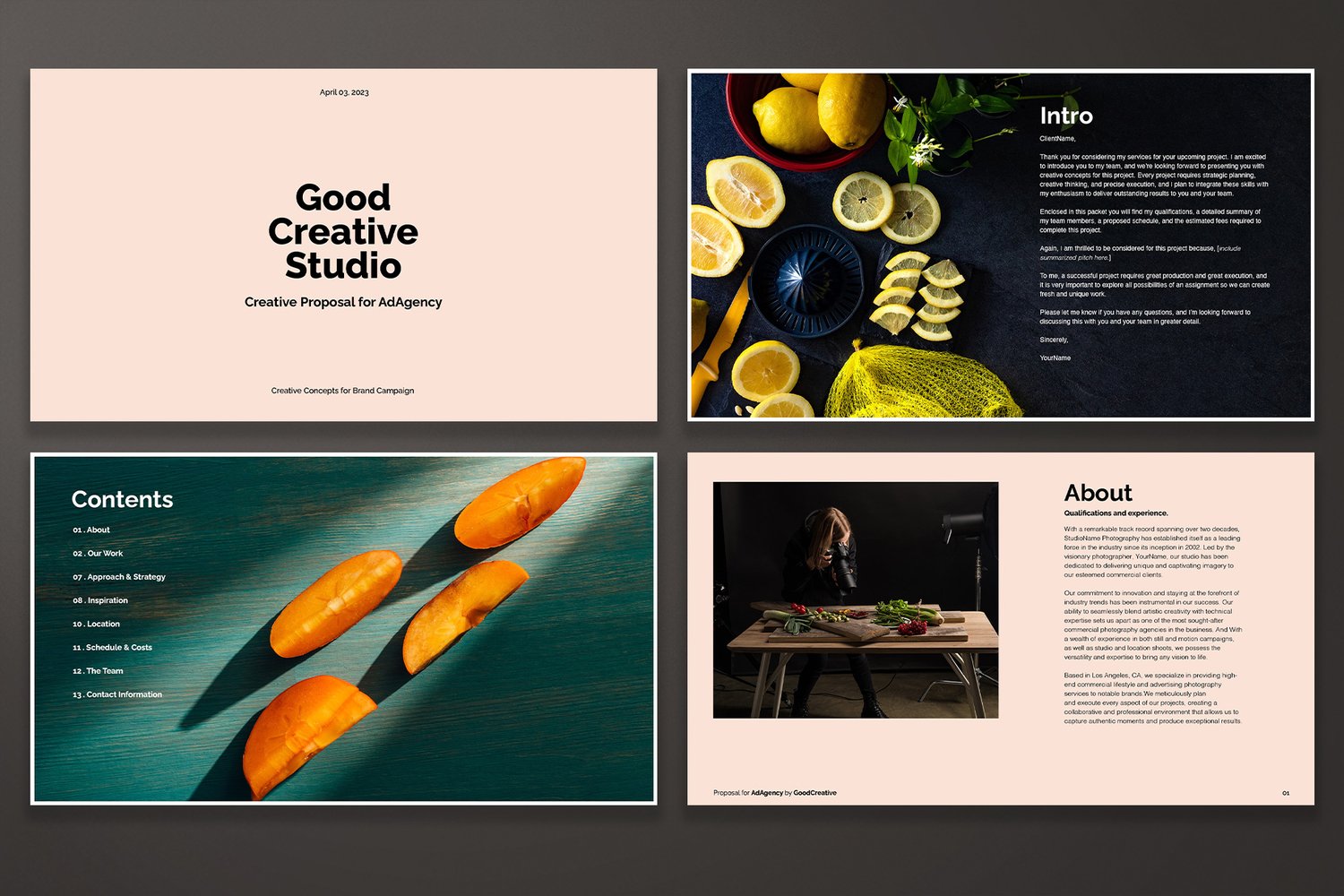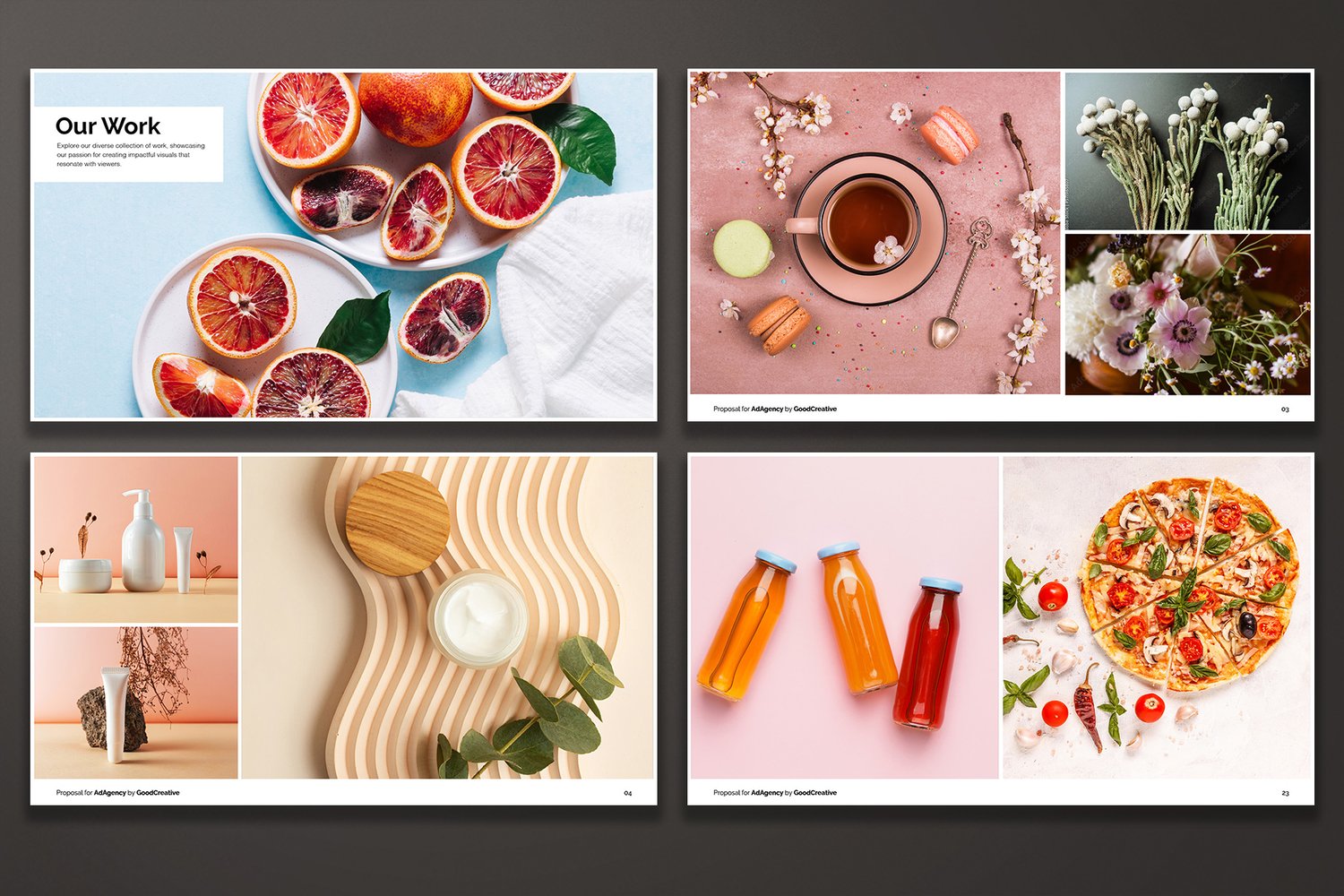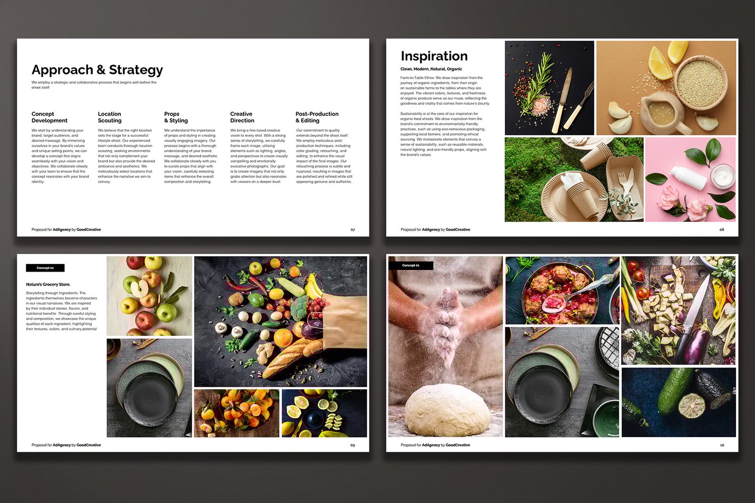 Tailored for photographers, creative directors, graphic designers, ad agencies, and directors alike, this 38-page customizable template for Adobe InDesign and Canva is meticulously designed to meet your specific needs. Simply insert your images, copy, and branding elements, and voila! You're ready to dazzle. With its fully customizable design, tweaking colors, fonts, and page layouts is a breeze, ensuring your pitch aligns perfectly with your project vision.